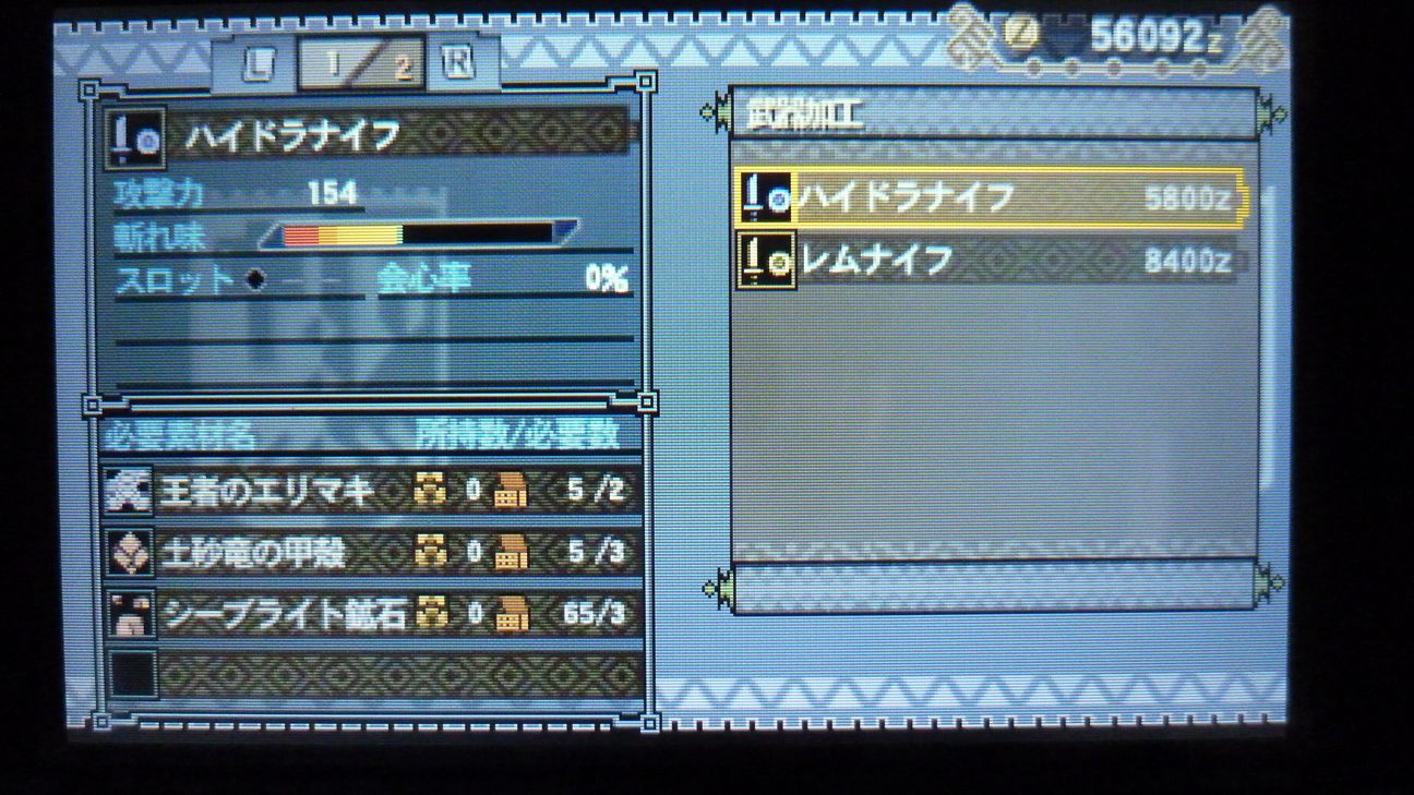 気がついたらエリマキが大量にあったのでハイドラナイフも作成だが、