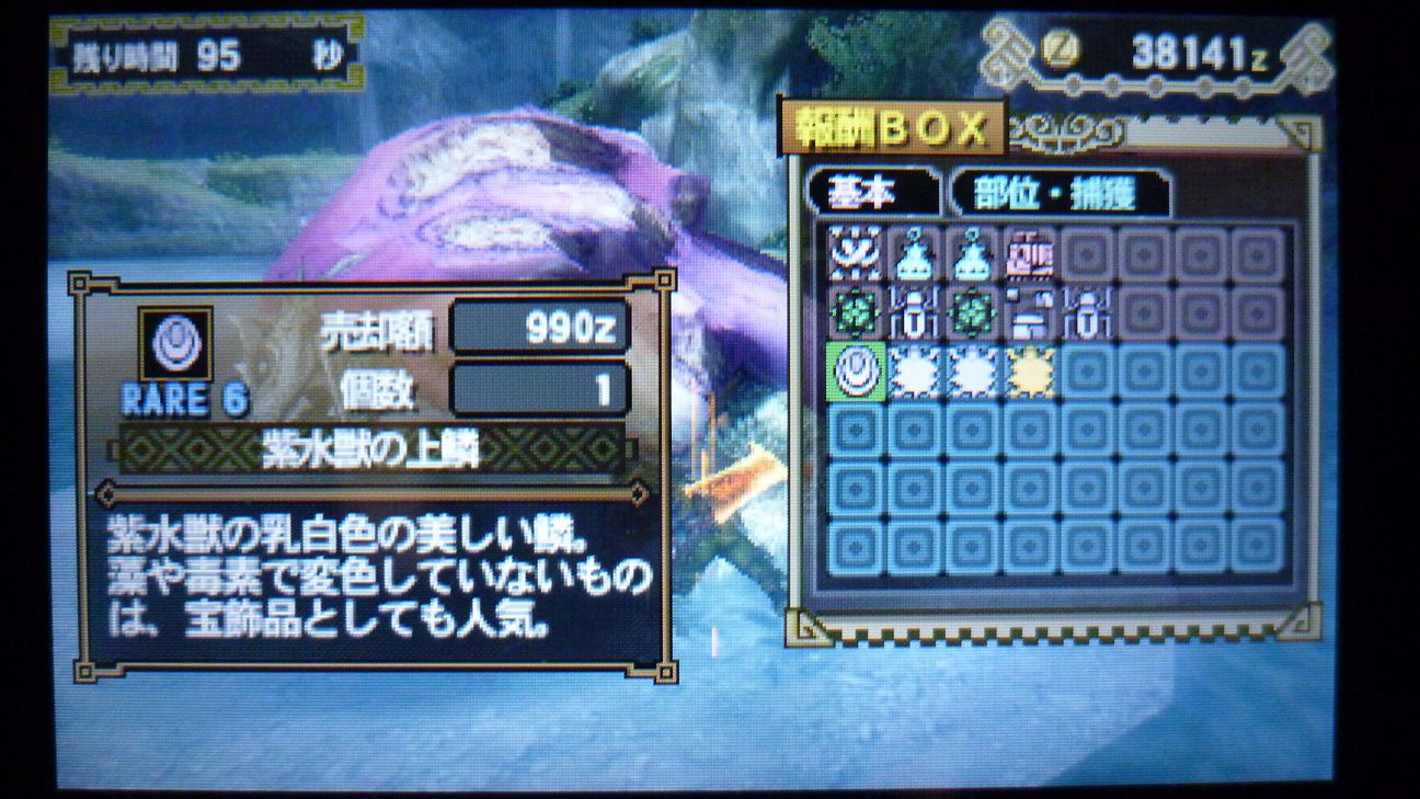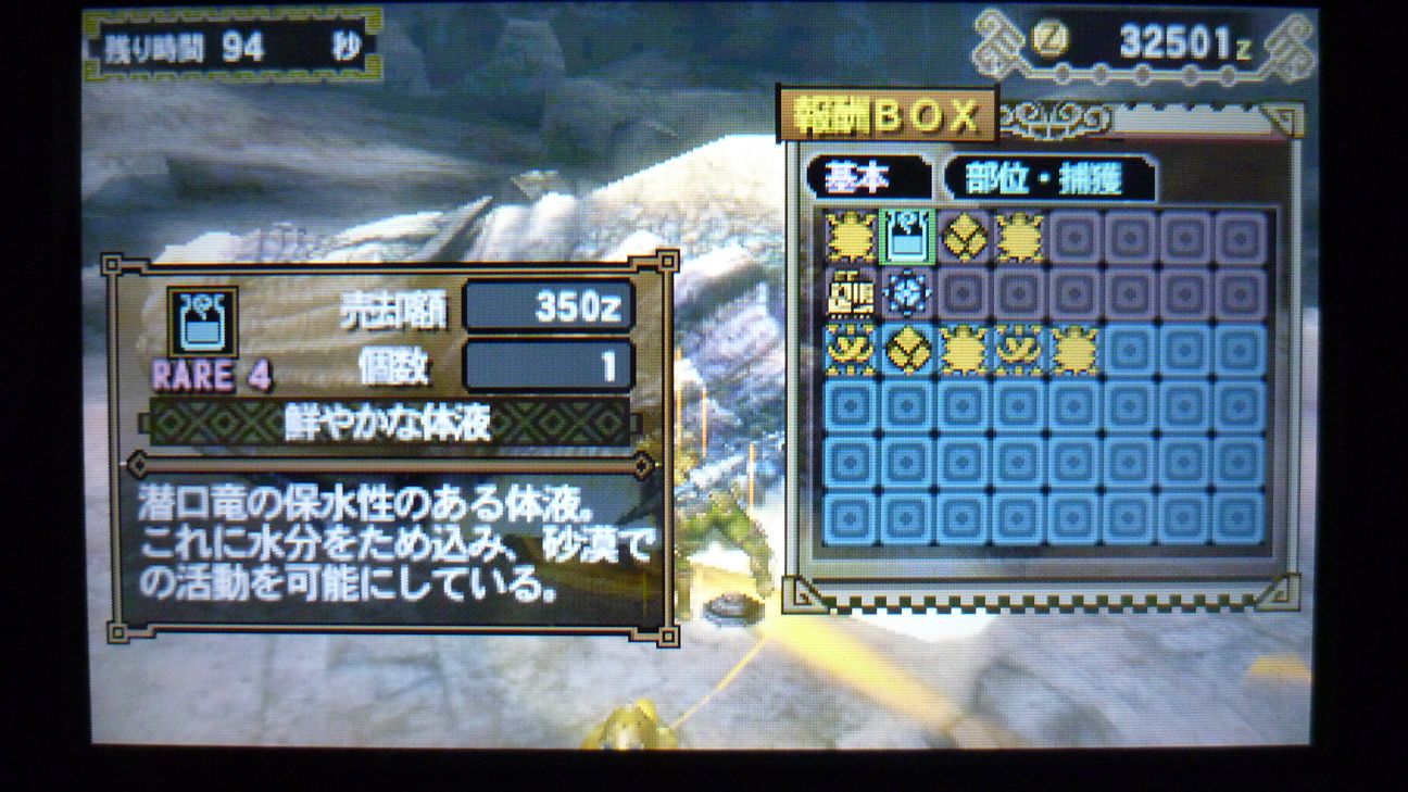 入手素材は少々寂しいものか…、頭殻は上位で手に入ればいいな。
