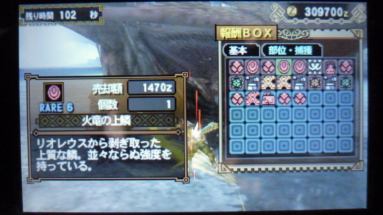 2戦目尻尾剥ぎ取りで上鱗、この時点であと1個!