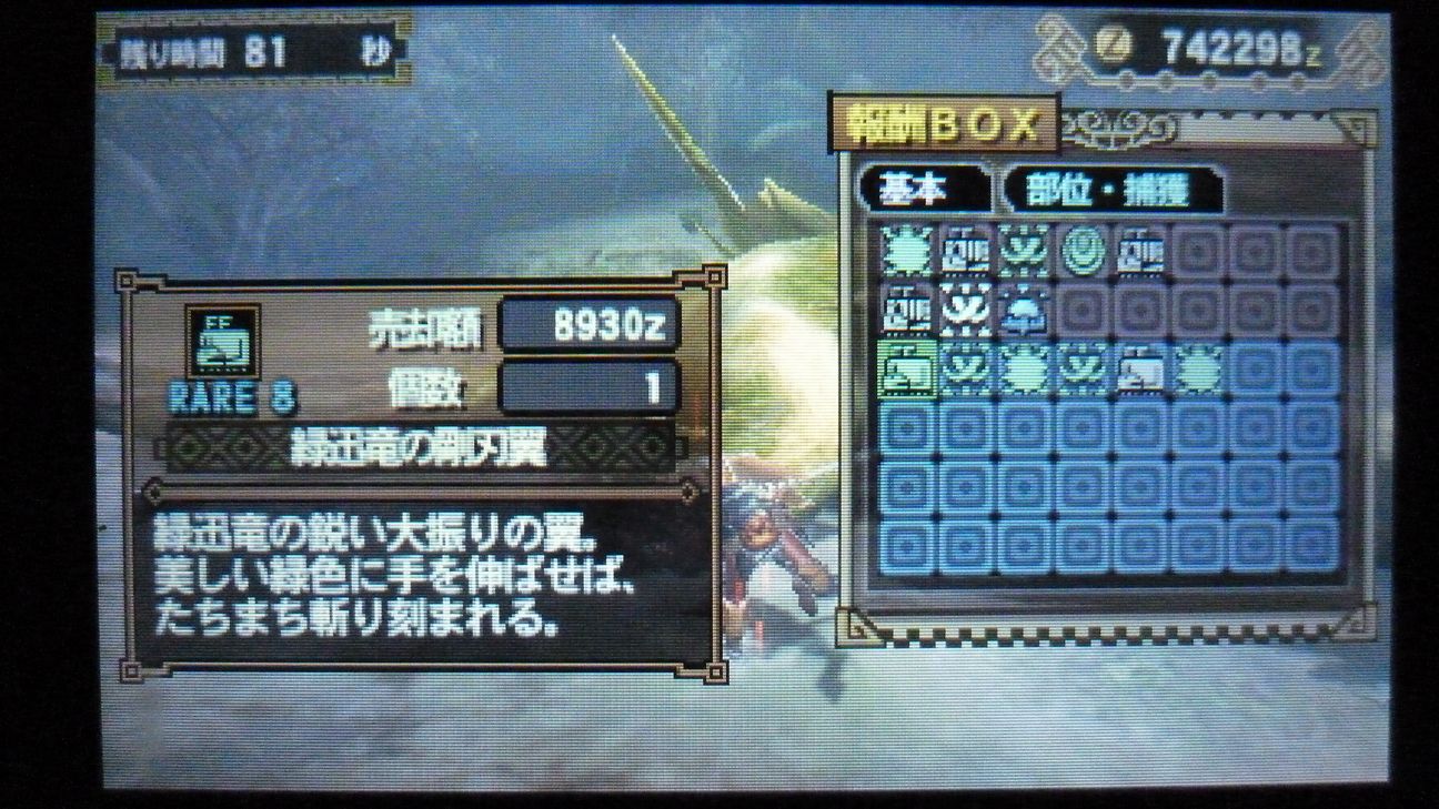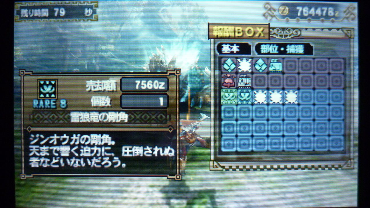 これで一気に作成難易度が落ちましたが、剛角も部位破壊報酬にて獲得!!