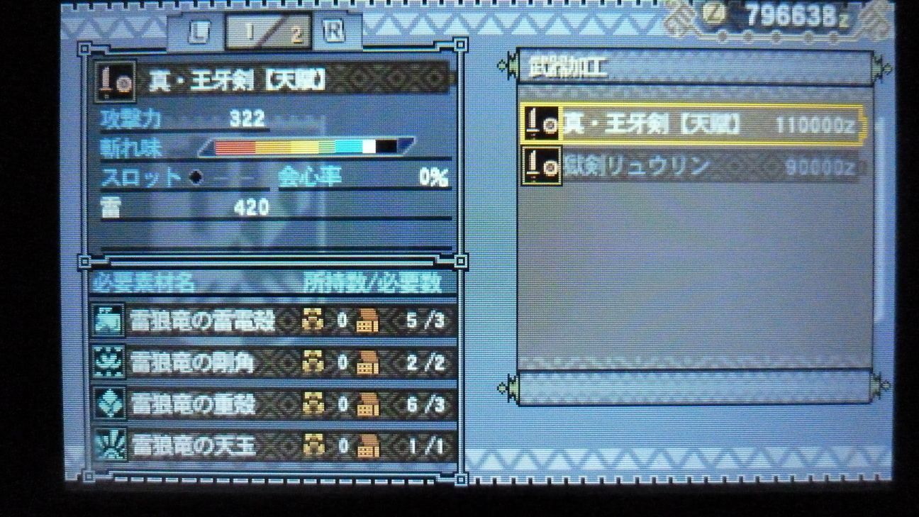 雷武器が早く欲しかった…それだけ、作成難易度で行けば天玉が必要になるコッチより、