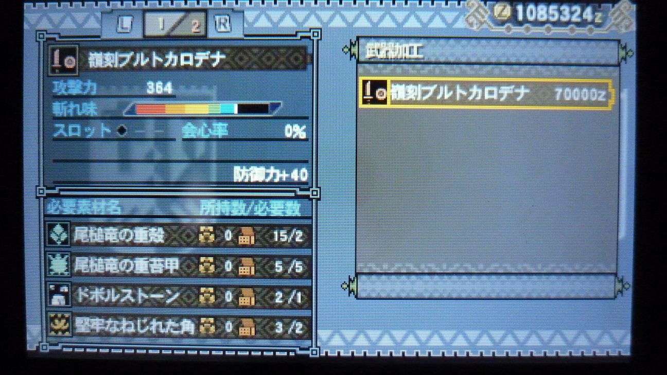 P3では上位最終強化でしたが、G級武器にしては、いまひとつなスペックだな~と思ったら