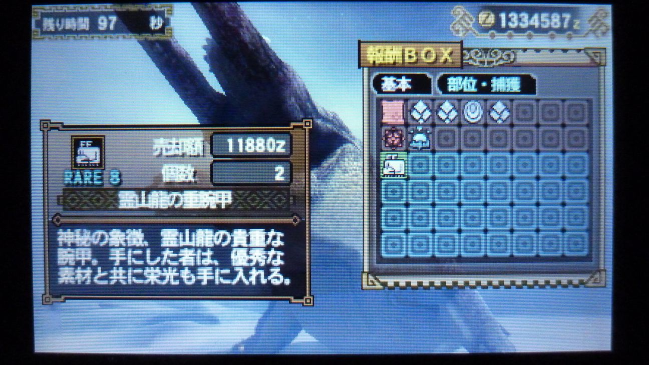 今回は全体的に寂しい報酬ですが、腕破壊の報酬が重腕甲2つ!