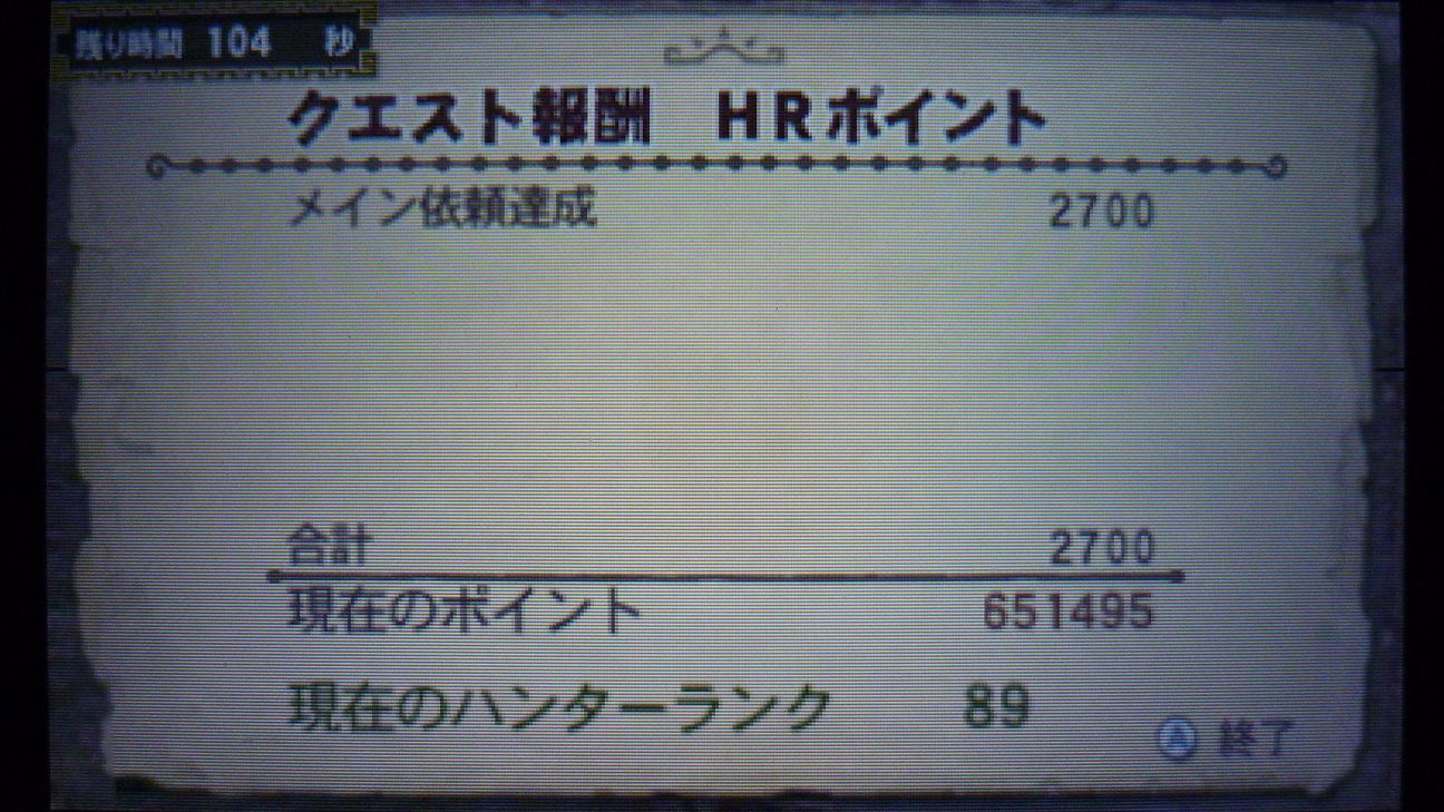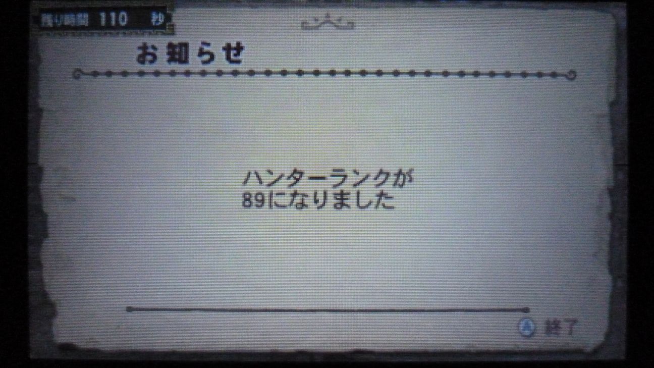 ハンターランク89!次からは90代突入!