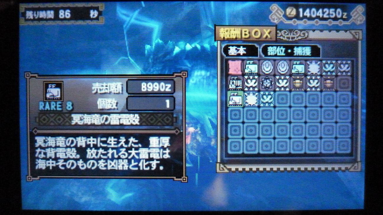 特に雷電殻2つ手に入ったのが大きいねェ。前回よりはいい。