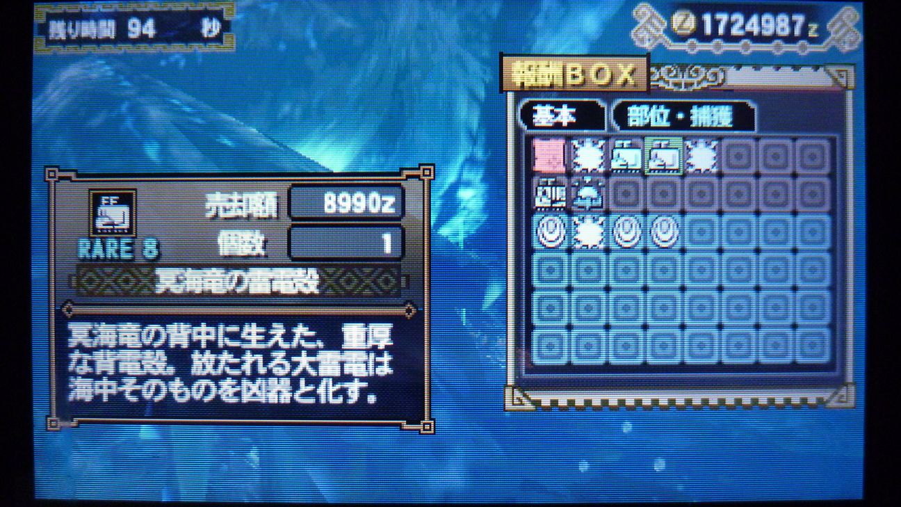 狩猟時間は相変わらずギリギリ、雷魂が手に入ってからちょっと守りに徹しました。