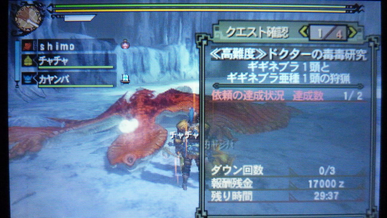 ネブラ三頭クエを狙ってたのだが、なかなか出ないので原種亜種クエを選択。