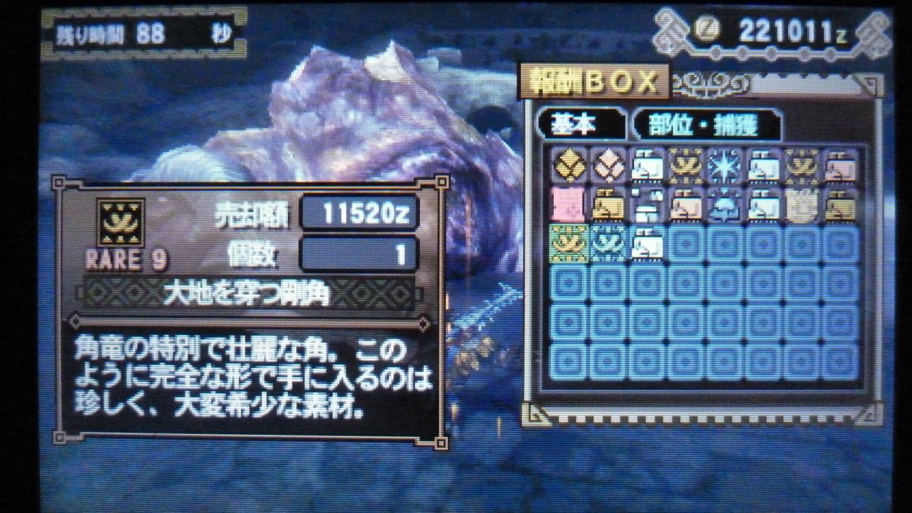 時間ギリギリだったのは乱入ボロス狩ってたため、結局間に合わなかったorz