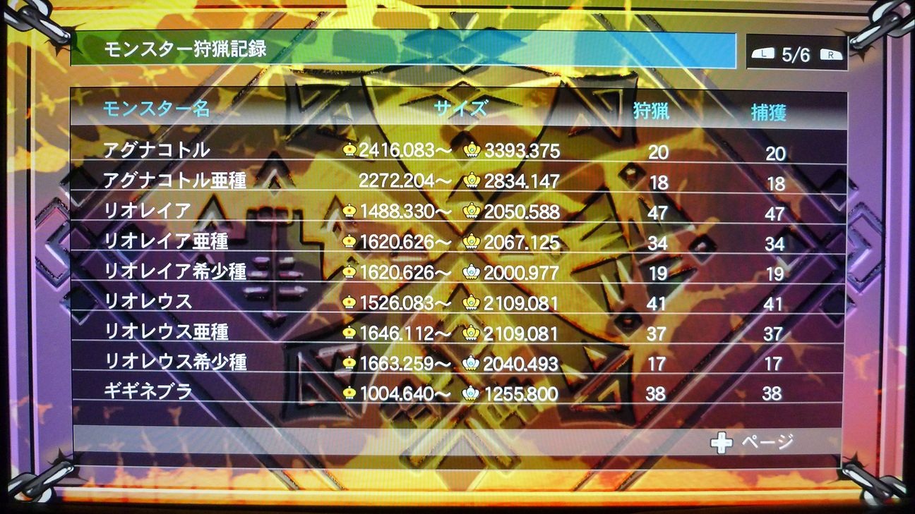 ギルカで狩猟状況確認、このページだけでは最小未取得はアグナ亜種だけ。