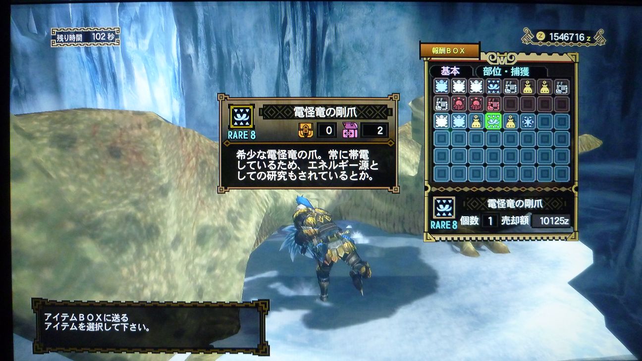 前に亜種武器作成で素材の数が1桁になってた剛爪補充。