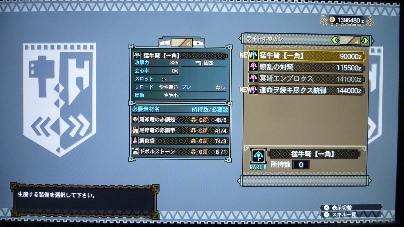 武器集めやってみるか~ということでライトボウガン!