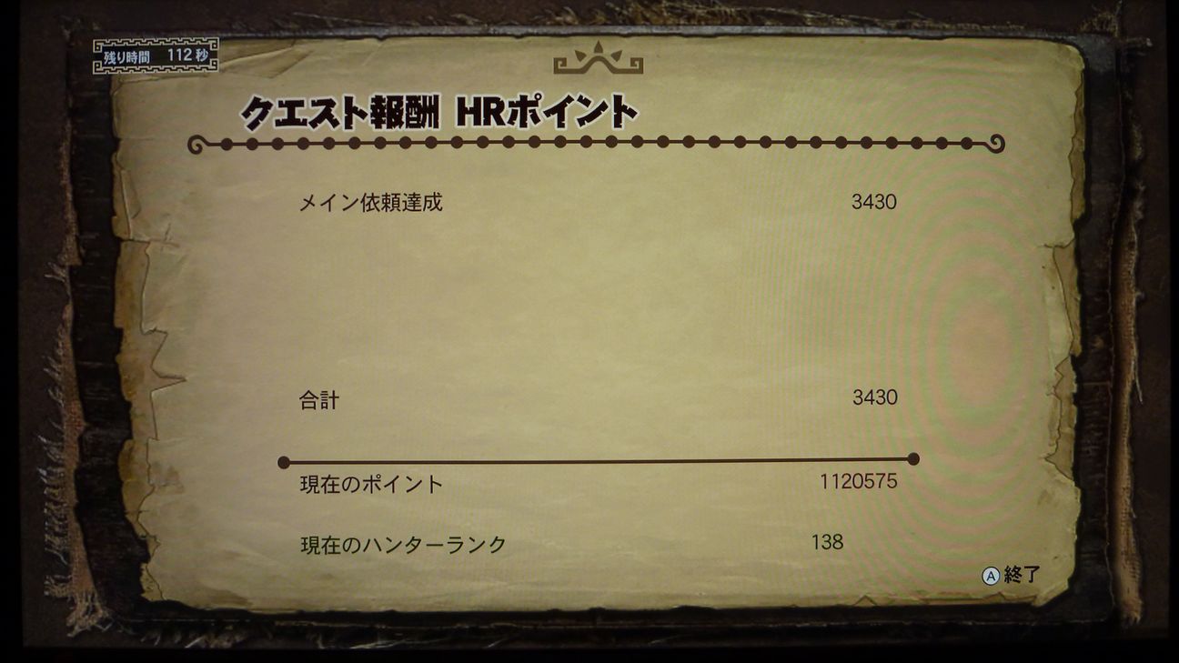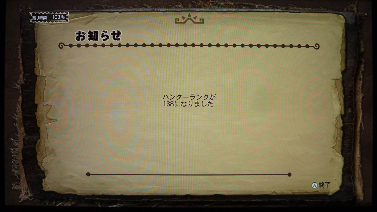ハンターランク138になりました。150まで…というほどにまで近づきましたね。