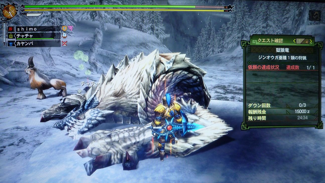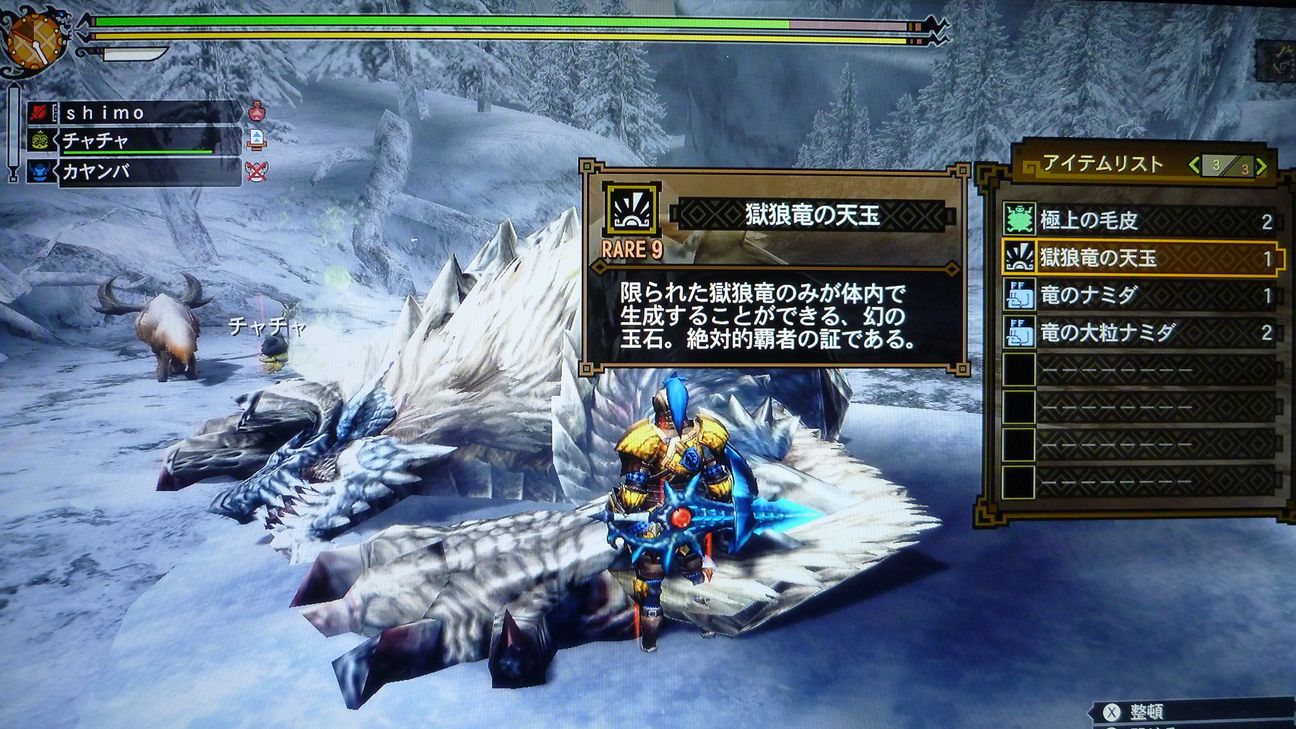 …と捕獲した後の画像でありますが、剥ぎ取り前後がちょうどジンオウガのターンに