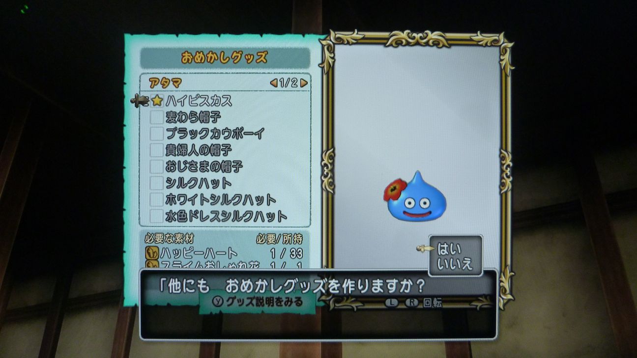 今まで手付かずの状態だった、仲間モンスターのおめかしグッズをいくつか作ってみました。