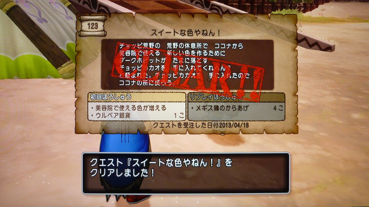 報酬は新色「チョコレート」が美容院で選択可、ウルベア銀貨1つ、