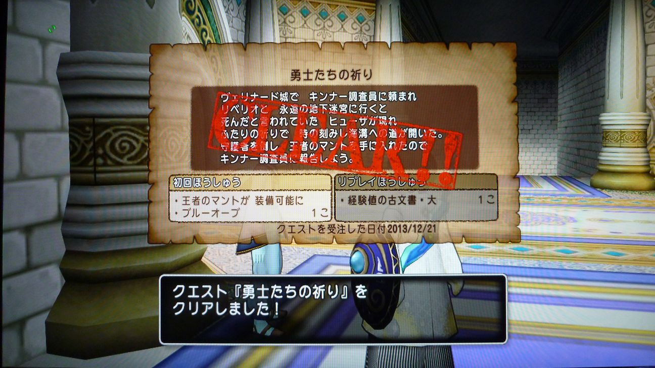 報酬はブルーオーブ1つ、そして王者のマントが装備可能になります。
