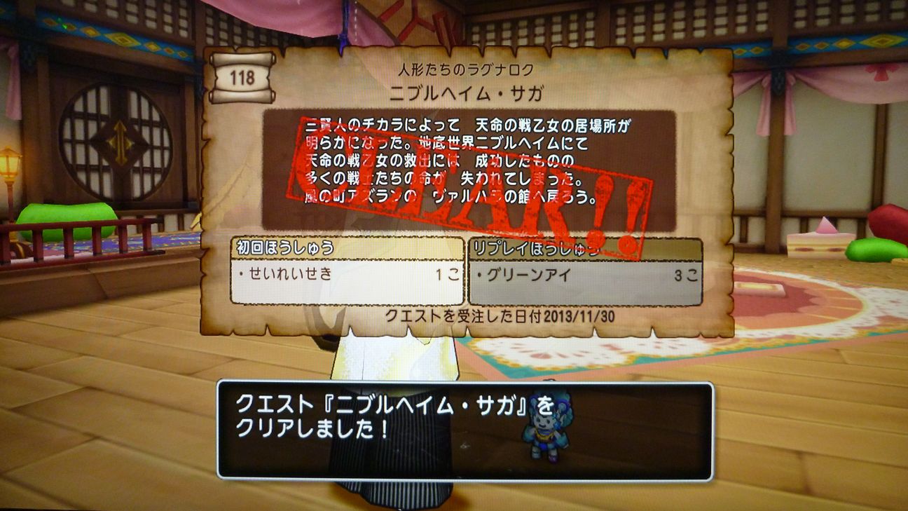 お部屋に戻ってクエストクリアとなります。
