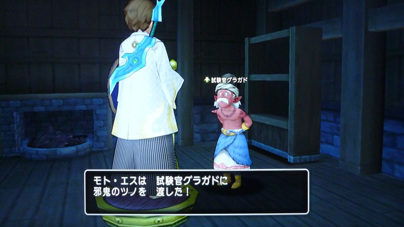 試験官にツノを渡した後で、依頼人に報告してクエストクリアとなります。