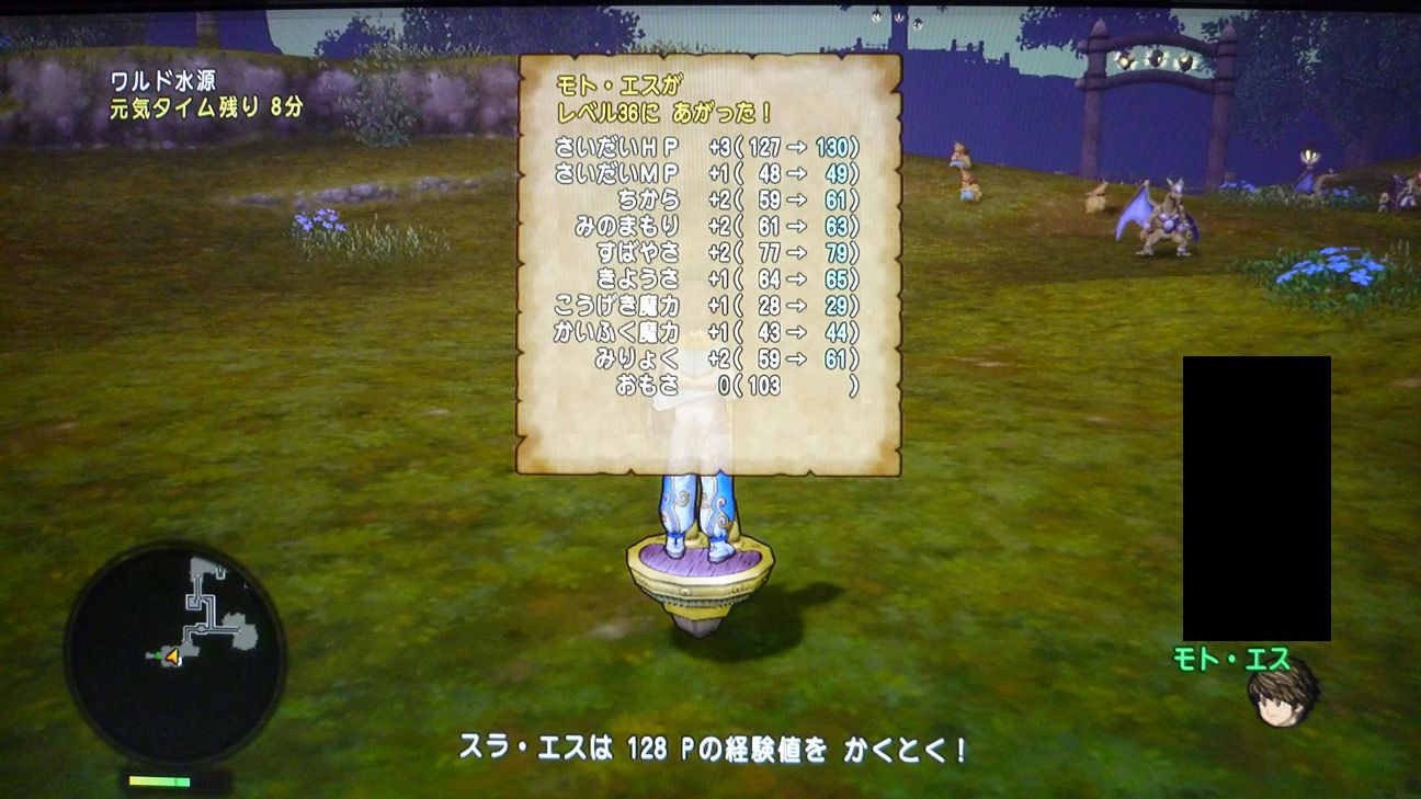 ミネアのカードの効果継続中(皇帝のカード=2時間経験値2倍)のため、